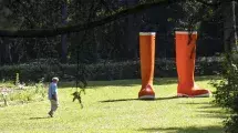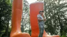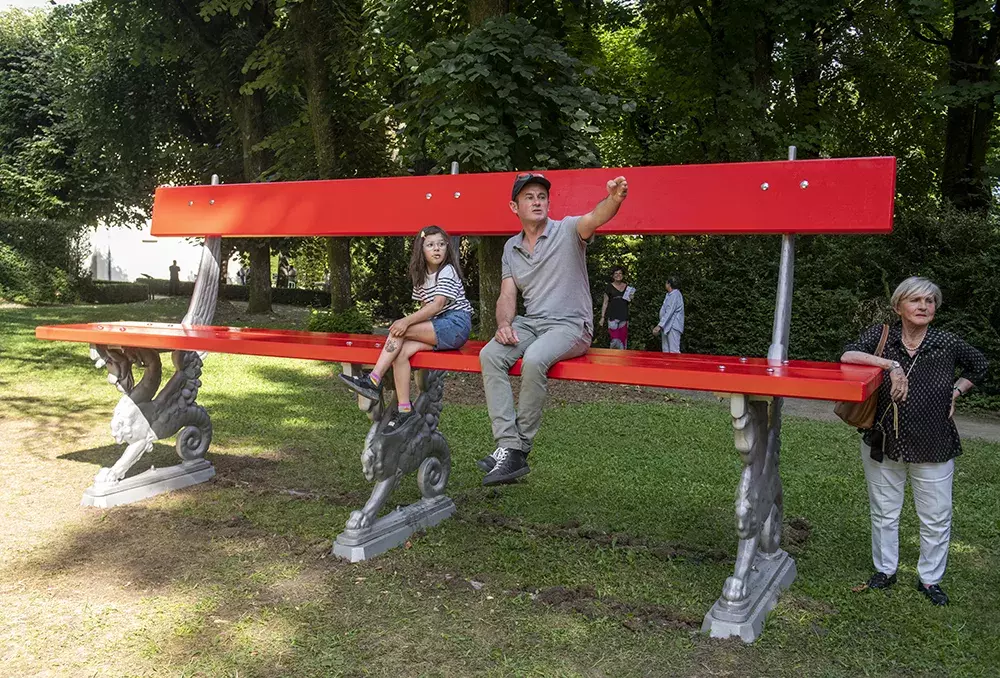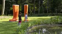 Lilian Bourgeat nous invite à une promenade décalée dans les jardins du musée Hébert à La Tronche avec ses objets hyperréalistes et surdimensionnés. Il attire notre attention, au détour des arbres et bosquets, sur des objets de notre quotidien : porte-manteaux, étendoirs à linge, bottes seront à découvrir au format XXL.